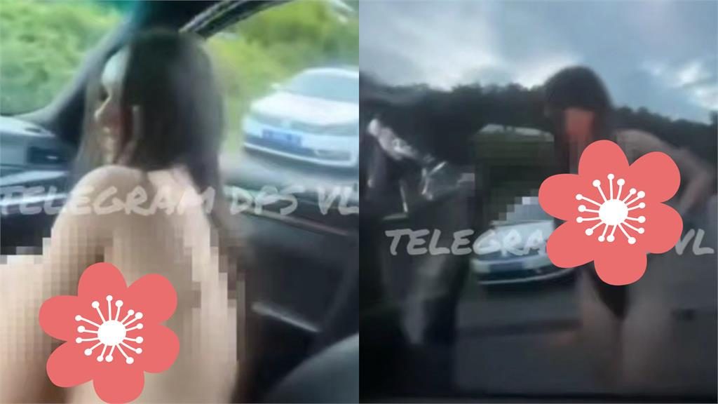 画面显示,这名长发辣妹先在副驾驶与警察闲聊,接着突然开始宽衣解带,最后几乎全裸走下BMW,在临检点摇摆热舞。结束后她若无其事地回车离开,完全无视法律风险。
