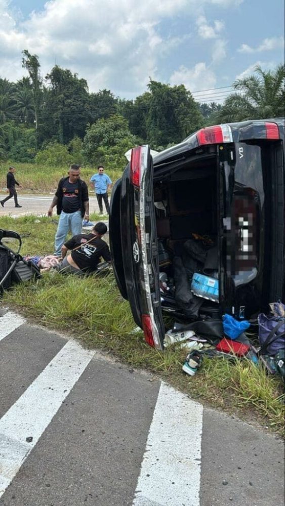 初步调查显示,事发时四驱车沿直路行驶,碰上正从支路驶出的客货车,两车猛烈相撞,导致客货车失控翻覆在路中央。车上共有8名男子,其中2人伤重当场死亡,另有3人重伤及3人轻伤。