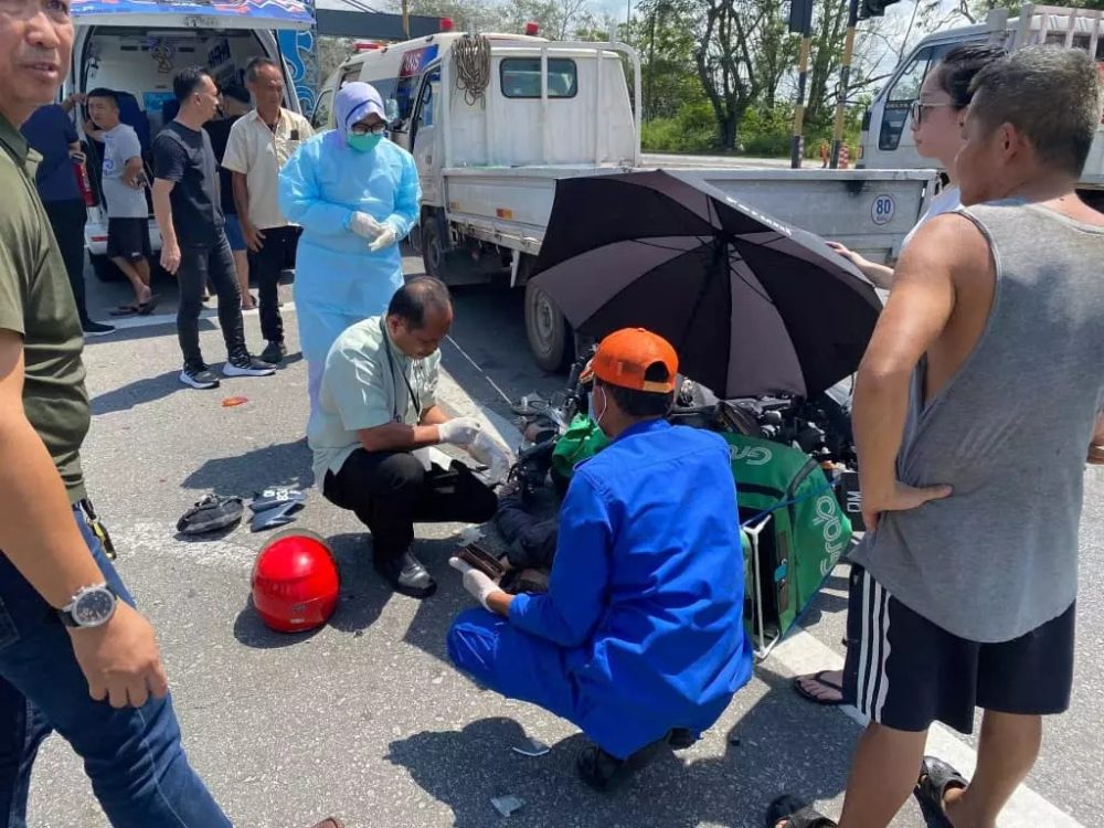 砂拉越古晋再传憾事,一名送餐员在机场四川路红绿灯路段追尾罗里,当场丧命。
