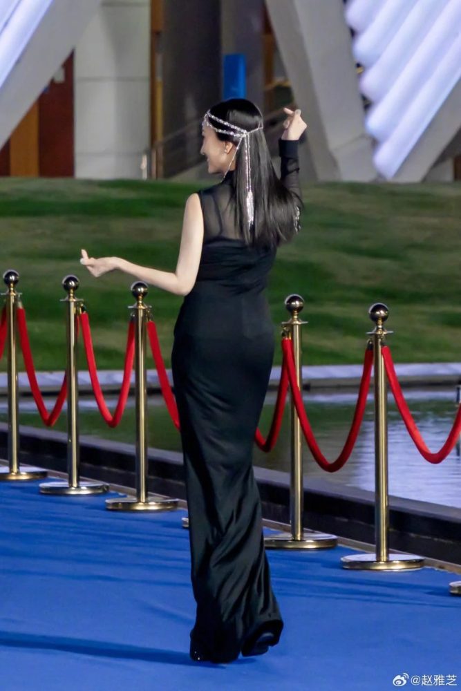 已年满70岁的赵雅芝,保养得宜得令人难以置信。她身穿紧身黑色长裙,搭配超高跟鞋与闪亮头饰,中分发型衬托出高贵气质。无论从正面还是背面,都展现出零死角之美:小蛮腰纤细、曲线完美,S形身材完全不输年轻女星。