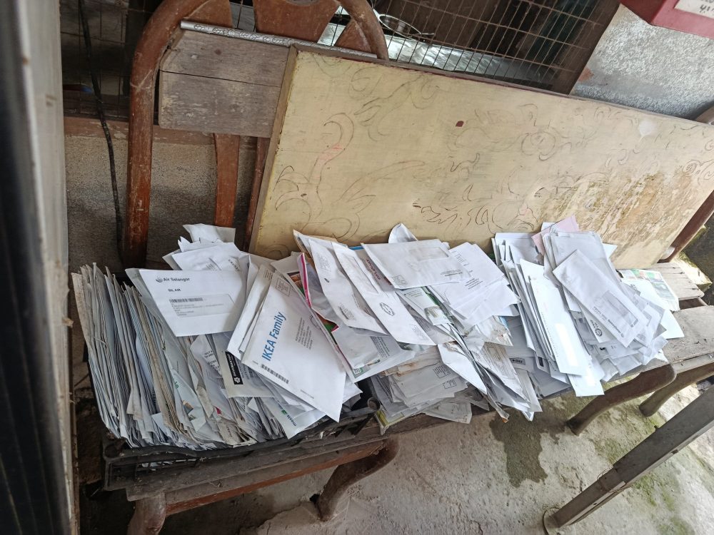 疑因甘榜地址不够完整,导致信件难以逐一送到家门,最后只好集中堆放在指定地点,等待收件人自行领取。