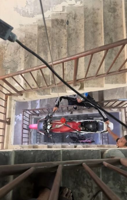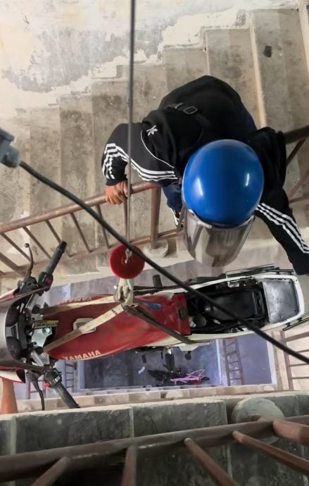 近日,一段男子利用起重机将摩托车吊上公寓楼的视频在TikTok引发热议。影片中可见几辆珍贵的Yamaha RXZ摩托被逐一吊升至没有电梯的4楼单元,引发网民热烈讨论。