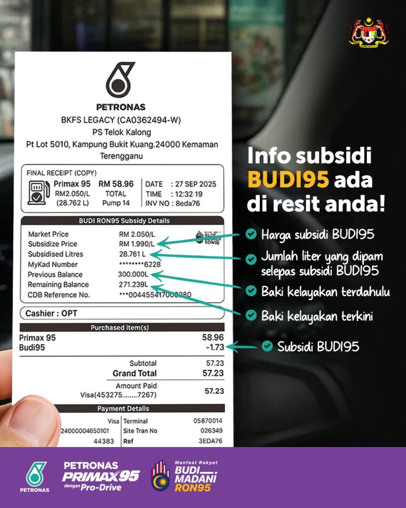 这项措施已于9月30日全面落实,而符合条件的STR援助金受惠者更能在9月28日提前享用,每公升汽油价格为RM1.99。
