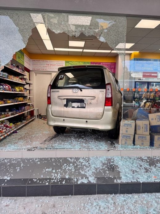 一名八旬华裔老翁今早在雪兰莪锡米山大路一间油站买完报纸后,疑似误踩油门,结果整辆轿车直接冲进油站便利店,撞破玻璃门、撞飞桌椅,所幸无人受伤。