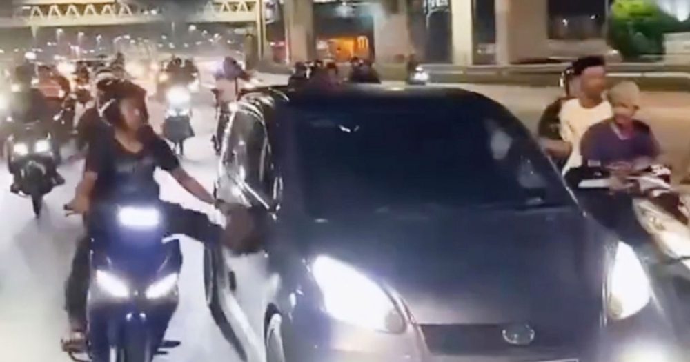案件发生于本月28日凌晨约4时,当时超过20辆摩哆在雪州蒲种13英哩收费站附近大道与一辆Myvi轿车发生追逐,其中一名骑士还脚踹轿车,并企图强行打开车门,过程惊险。