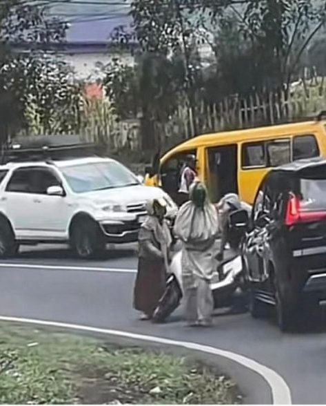 这段影片由TikTok用户 @khariestama 上传。画面中,一名女子骑摩托车时不慎摔倒,连人带车倒在马路中央,摩托车横亘在车流之间,险些遭到驶来的车辆碾压。