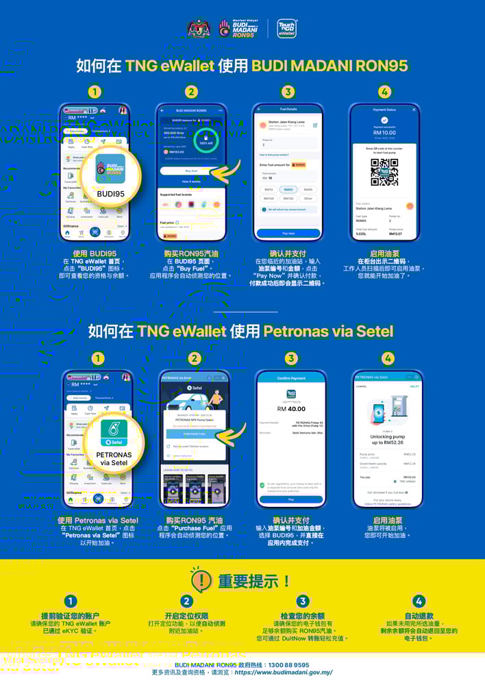 公司在文告中解释,用户透过TNG电子钱包付款,只需预先输入所需的较高金额即可加油,若实际油费低于预设金额,未使用的差额会即时退回至用户的TNG电子钱包,无需任何额外申请。