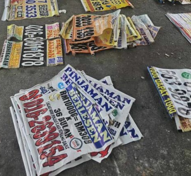 根据《诗华日报》报道无牌高利贷广告充斥街头!古晋警方昨日展开“秃鹰行动”(Op Vulture),大规模清理非法借贷广告布条,一天内拆下 757张横幅,成效显著。