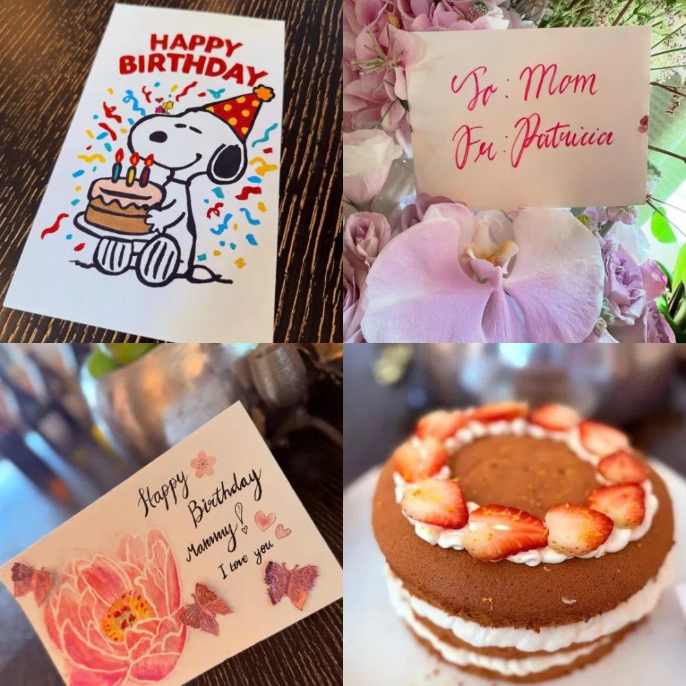 黎姿透露,今年最珍贵的礼物来自女儿们——亲手制作的草莓蛋糕与手绘生日卡,满满的心意让她感动不已。从照片可见,卡片上写着“To: Mom Fr: Patricia”以及“Happy Birthday Mammy! I love you”,配上童趣绘画,令人直呼温馨。