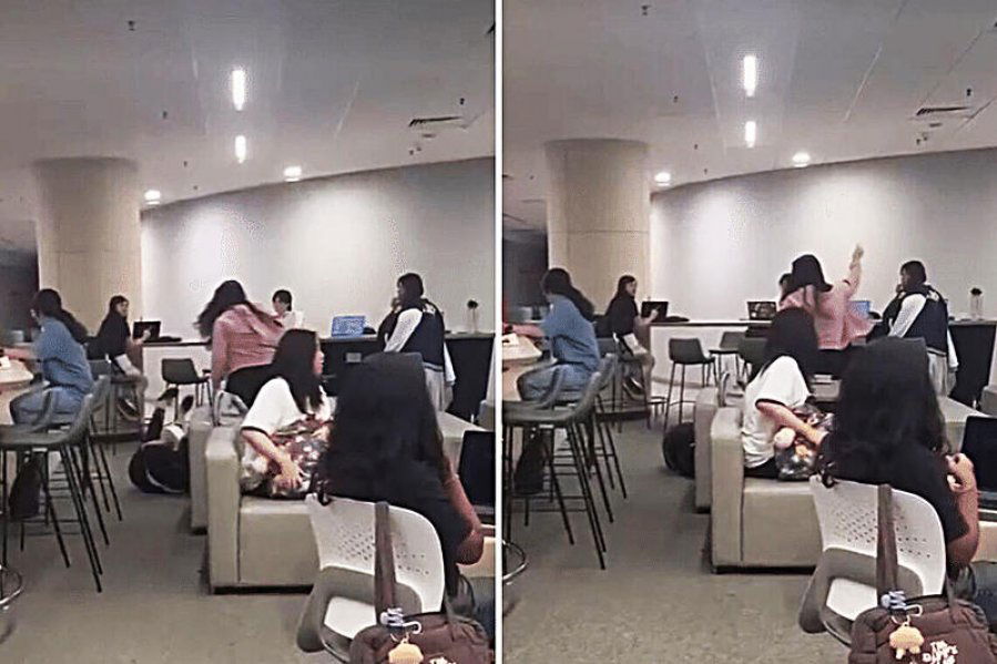 据了解,粉衣女子是该校学生,黑衣女子则是校内清洁工。两人最初因不明原因争执,清洁工疑先扯住女学生头发,女学生随后反击,将她打倒在地。