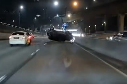 宝马轿车疑因车距过近,未能及时煞车,猛力撞上前方第二国产Ativa休旅车,导致Ativa瞬间被“撬飞”,在空中360度侧翻一圈后重重摔落地面,惊险画面宛如动作片,所幸司机并无大碍!