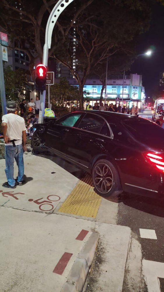 新加坡昨晚发生一起严重车祸,一名年逾七旬的老翁在人行道上等红绿灯时,遭一辆失控冲上人行道的黑色马赛地轿车猛撞,当场被撞飞约两公尺,双腿重伤疑似骨折,随后被送往陈笃生医院。涉事的37岁男司机涉嫌酒驾,当场被警方逮捕。
