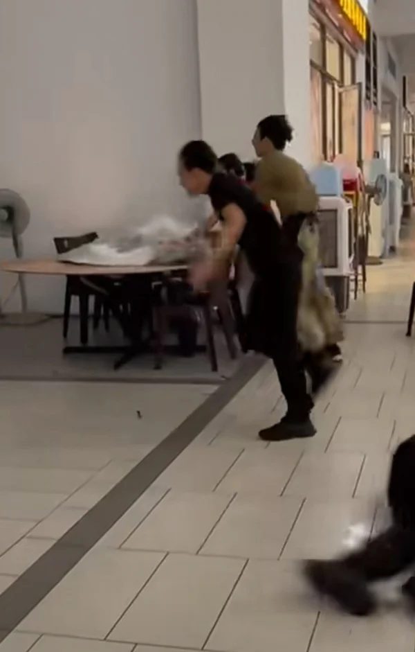 近日,吉隆坡甲洞一商业区遭遇暴风雨袭击,强风吹得椅子翻倒,瘦小男子险些被掀飞。