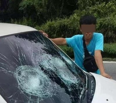 这起事故于昨日早上约11时35分,在圣伊丽莎白中学附近路段发生。当时,一辆白色第二国产肯那里(Kenari)轿车疑似与一辆摩托车发生碰撞,摩托车被撞向中央分界栏,骑士愤怒之下试图以头盔敲打车窗。