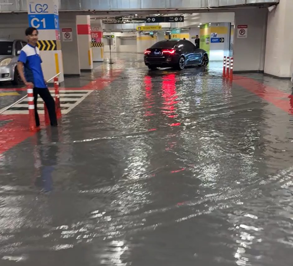 一场突如其来的暴雨,让吉隆坡市中心一间商场的停车场意外上演“瀑布奇观”,现场积水严重,场面惊人。