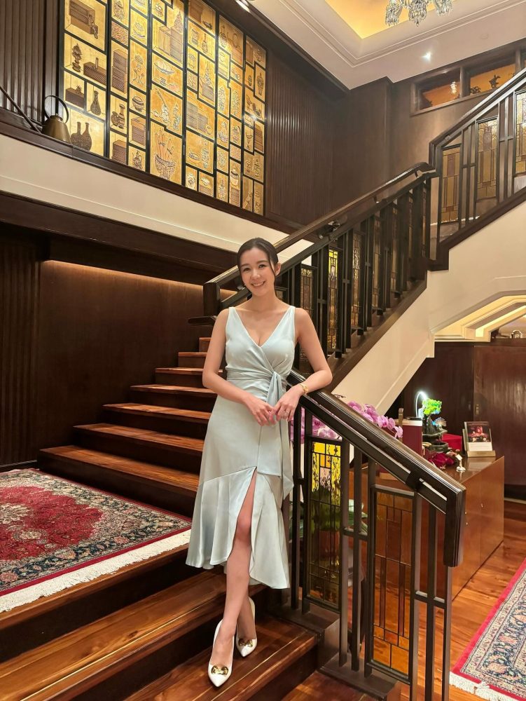从麦明诗分享的照片中可以看到,她穿上一条浅绿色低胸无袖裙,不仅小露香肩还大秀长腿,状态回勇,气质出众。细腰已经悄悄回归,双腿依旧修长白滑,最抢镜的莫过于产后明显升Cup的上围,比以前更有料,网友都大赞她:“比没生时还辣!”