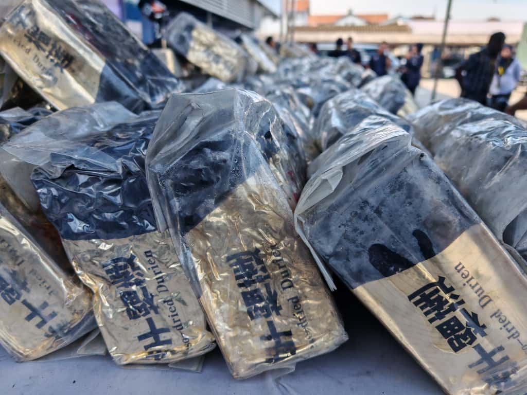 毒贩花样百出!这次竟把毒品伪装成“冻干榴梿”,企图蒙骗执法人员。未料行迹败露,警方在南北大道展开2公里追捕,最终在弃置的车内起获重达385公斤、总值近1294万令吉的毒品。
