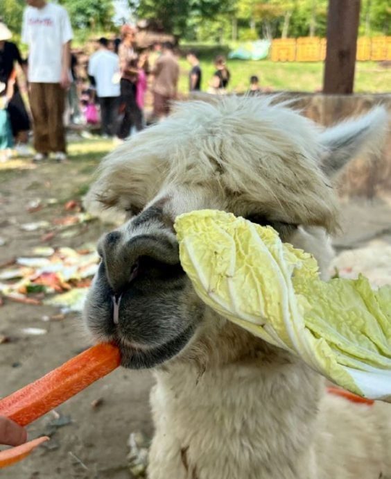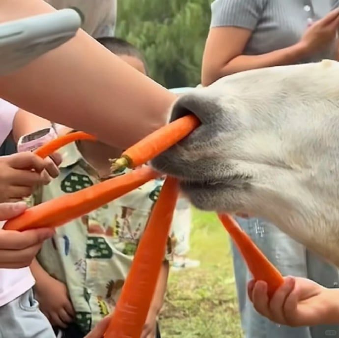 从网友上传的照片可见,至少两只羊驼躺卧在地、表情呆滞,周围散落着大量胡萝卜、白菜等残余食物。一名网友调侃道:“它们真的吃不下了。”还有人晒图表示:“带了五斤红萝卜,扔了四斤。”更有人担心:“这样吃会不会撑死?”也有人指出:“这状态不太对,眼睛都翻白了。”