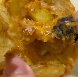 没想到,女儿吃了半个后跑来喊“酸酸的”,她立刻检查,结果发现馅料竟长满霉斑、黑白点密布,早已严重变质。