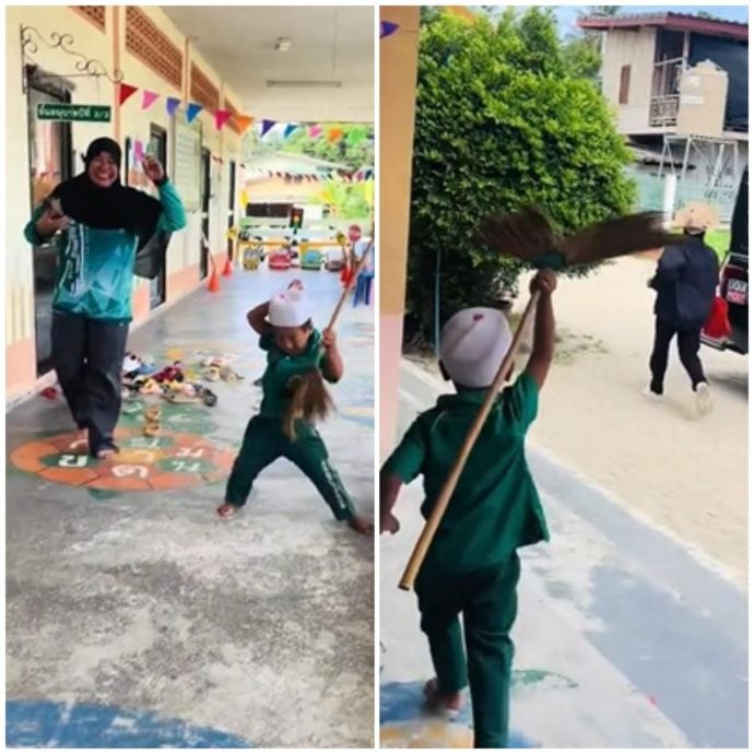 这段视频由网民 @salisa.ll 上传至 TikTok,地点位于泰国南部洛坤府(Nakhon Si Thammarat)的一所幼儿园。活动旨在教导孩子们,若遇陌生人或被绑架的情况,应如何保护自己。