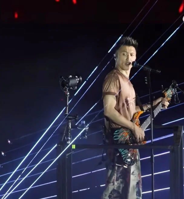 谢霆锋日前在重庆举行巡回演唱会时,意外被舞台激光直射头部!当时他正弹唱《潜龙勿用》,突如其来的强光令他明显一震,立即侧头闪避并皱眉,整个人神情紧张。唱完后,他还下意识摸了摸头发,不少观众称闻到“焦味”,疑似头发被灼烧,现场粉丝急喊:“关掉激光!”