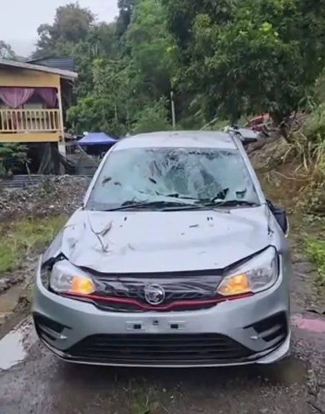 社交媒体流传视频显示,一辆运载新车的罗厘疑因路滑失控侧翻,至少6辆全新宝腾Saga在运送途中坠地受损,有的几乎报废。