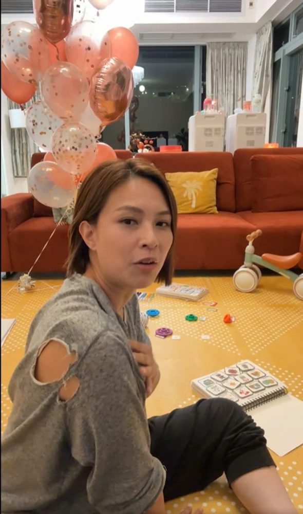 44岁的前港姐亚军朱慧敏(Queenie)与丈夫、心脏名医陈良贵(Jason)婚后育有一对儿女,日前在国庆节(10月1日)与2岁女儿Shera(乳名:娃娃)和7个月大的儿子Aten(乳名:Yeah Yeah)一起开直播,却被网友发现她身穿一件破洞上衣,完全没有顾忌“医生太太”的形象,反而乐当平凡“师奶妈”。
