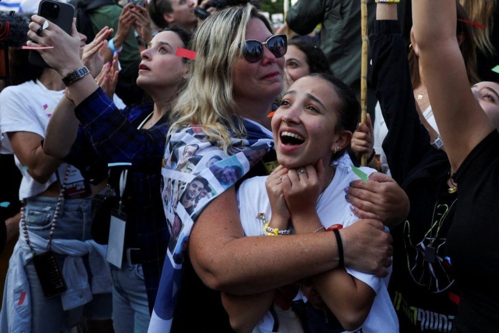 随着人质获释消息传出,数千人聚集在特拉维夫市中心守夜区,纷纷欢呼、歌唱、挥舞国旗。一些人高喊亲人名字,有者泪流满面与亲友紧紧相拥,场面动人心弦。