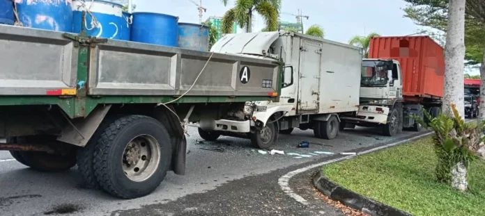 诗巫南兰路近日发生一起四车连环相撞事故,涉及三辆罗里与一辆国产客车,所幸无人受困或重伤,但事故一度导致路段严重堵塞。
