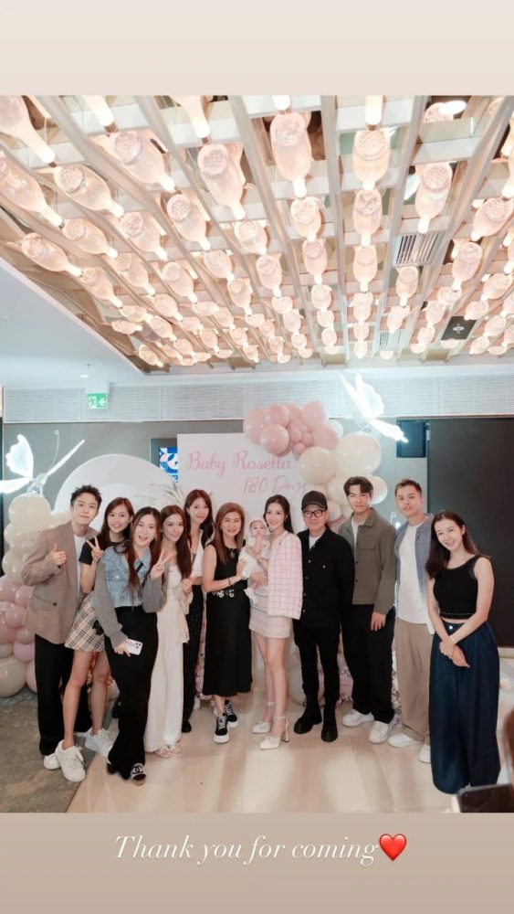 王君馨发布了与丈夫及一众好友为女儿庆祝百日的片段,现场布置精致,还有美酒美食招待宾客。她的好友“处女党”岑丽香也在IG分享了参加百日派对的美照,另一位好友李亚男,以及卫兰和卫诗姐妹也到场助兴。虽然小Audrey没有正面露脸,但她肥嘟嘟的小手小脚十分可爱,显示王君馨细心照顾女儿,养育得很好。