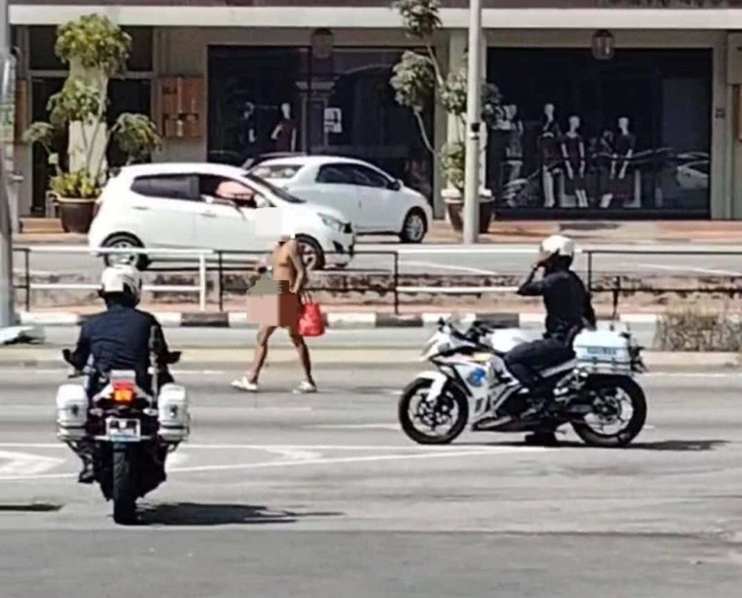 哥打拉沙马那再也今日惊现离奇一幕——一名中年男子全身赤裸,在交通灯路口公然兜售纸巾,令过往民众目瞪口呆。警方接获通报后赶赴现场,将该男子劝离。
