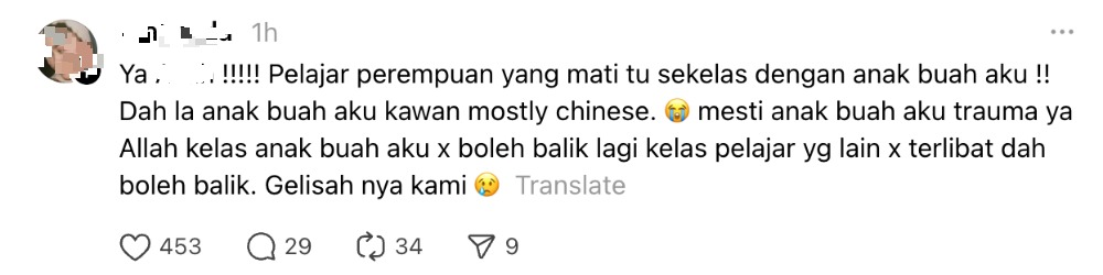 雪州白沙罗万达镇国中四校今早发生女学生遇害案后,校园陷入紧张与恐慌氛围。警方持续在场调查,校方直到下午2时才让部分学生离校,但死者的同班同学被指示必须继续留在校园,接受警方问询。