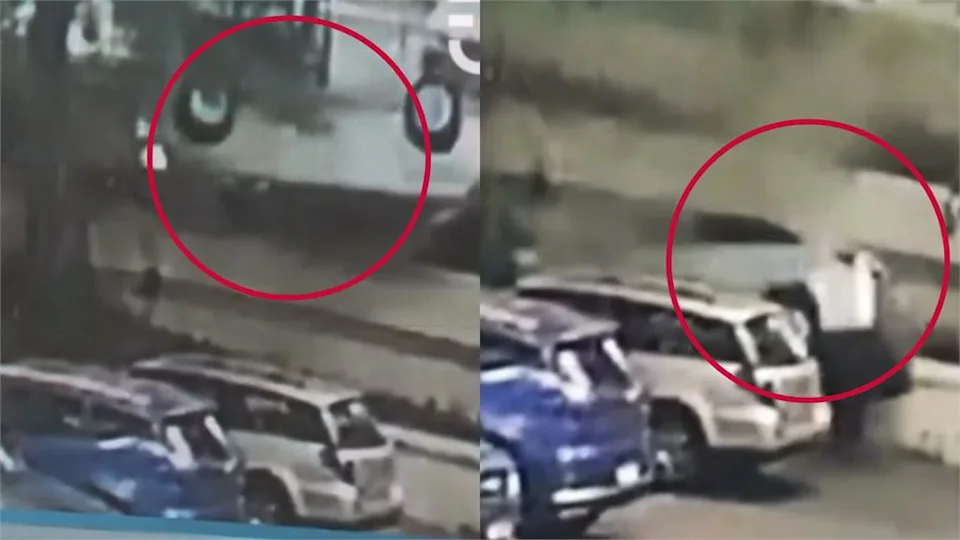 监控画面显示,轿车原本沿路缓慢行驶,突然加速冲向护栏。司机似乎察觉异常,试图转动方向盘挽救,但为时已晚,车辆撞破护栏,翻滚两圈后笔直坠落约5米深的停车场。令人惊讶的是,车子竟然“精准无误”地停在唯一空着的车位里。虽然落地冲击猛烈,旁边停放的车辆也受损,但无人受伤。