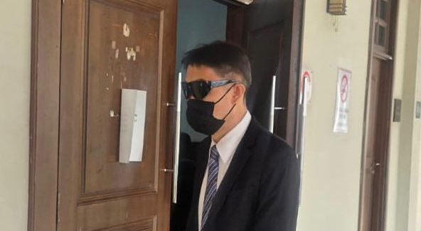 阮宏达今日身穿黑衣、戴着墨镜与口罩出庭,刻意遮掩面容。
