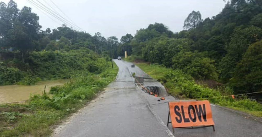 根据《诗华日报》报道连场大雨引发山体滑坡,柏拉朝与姆力地区两条乡区道路17日早惊现土崩,路面半边坍塌,交通受阻。