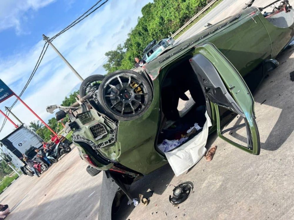 今早一场惊险车祸在黑木山通往樟仑的路段发生,一辆轿车为闪避一辆摩哆失控狂飙,猛烈撞上加油站的分界堤后整辆车翻滚腾空,车身零件四处飞散,甚至击断一根电线杆,现场犹如爆炸现场般惨烈。