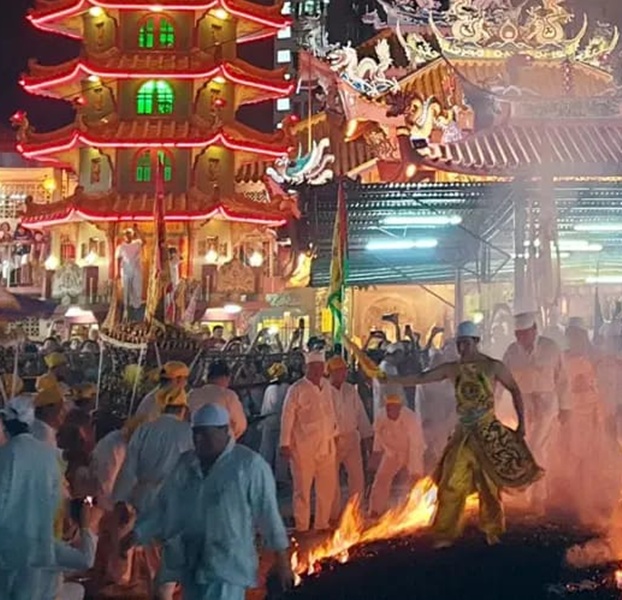 九皇爷庆典中常见的“下乩求神”、“过火坑”、“走火路”等仪式,象征祈福、辟邪与净化。