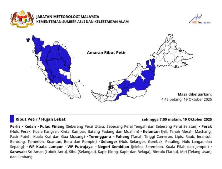 玻璃市、吉打、槟城(北海、中槟与南槟)、霹雳(上霹雳、江沙、近打、金宝、峇登巴当及慕阿林)、吉兰丹(惹里、丹那美拉、马樟、巴西富地、瓜拉吉赖及话望生)、登嘉楼、彭亨(金马仑高原、立卑、劳勿、而连突、文冬、淡马鲁、关丹、比拉及龙运)、雪兰莪(乌鲁雪兰莪、鹅唛、八打灵、乌鲁冷岳及雪邦)、吉隆坡、布城、森美兰(仁保、芙蓉、瓜拉庇劳及仁笨),以及砂拉越部分地区,包括诗里阿曼(鲁泊安督)、诗巫(实兰沟)、加帛(宋、加帛、峇拉加)、民都鲁(达岛)、美里(直浪乌山)和林梦。