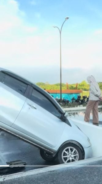 一名网民通过TikTok账号@finazz_25上传视频,指事件发生在莎阿南阿南英比安(Alam Impian)一处泊车场。视频显示,疑似因雨天视线不清,司机未察觉泊车格中间竟设有楼梯,结果整辆车直接“卡”进楼梯口,前轮悬空、车头受损。