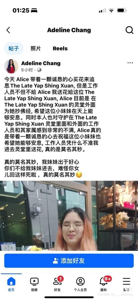 据悉,Adeline在社交媒体上发文表示,她的妹妹因某些原因无法亲自为叶芯嫙送上花圈表达悼念,但随即在帖子中对灵堂工作人员及叶芯嫙的家属进行言辞不当的辱骂,引发网友强烈不满。