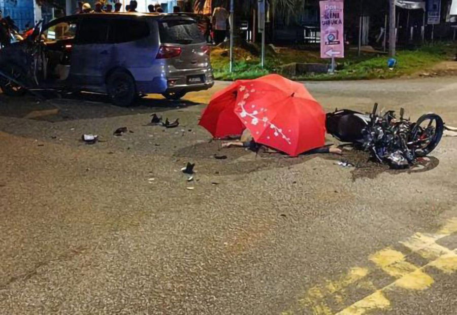 这起意外于周一(21日)傍晚6时左右,在美农通往双溪大年的峇都沙都路段发生。目击者称,死者驾驶摩托朝双溪大年方向行驶,行经三岔路口时,迎面一辆准备右转入住宅区的轿车出现,摩托疑闪避不及,直接撞上对方车身。