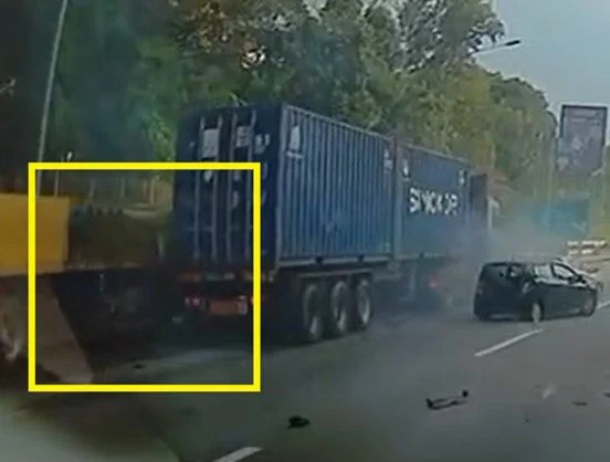 事故引发连环撞:后方一辆货柜罗厘刹车不及,撞上前方两辆轿车,并与旁边拖格罗厘擦撞,总计涉及五辆车辆。