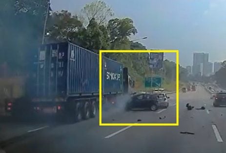 事故引发连环撞:后方一辆货柜罗厘刹车不及,撞上前方两辆轿车,并与旁边拖格罗厘擦撞,总计涉及五辆车辆。