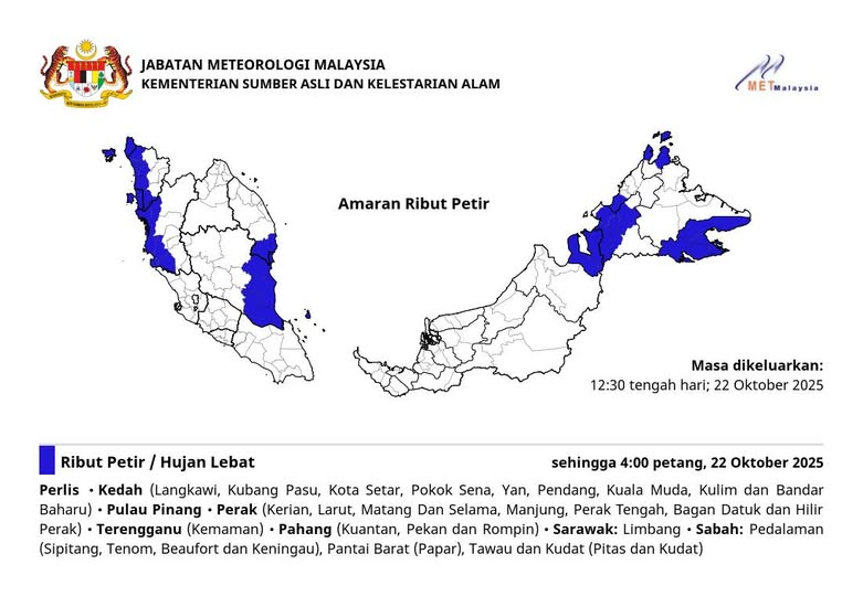 - 沙巴州:内陆地区(西必丹、丁蒙、保佛及京那峇鲁)、西海岸(巴帕)、斗湖及古达(比塔斯及古达)