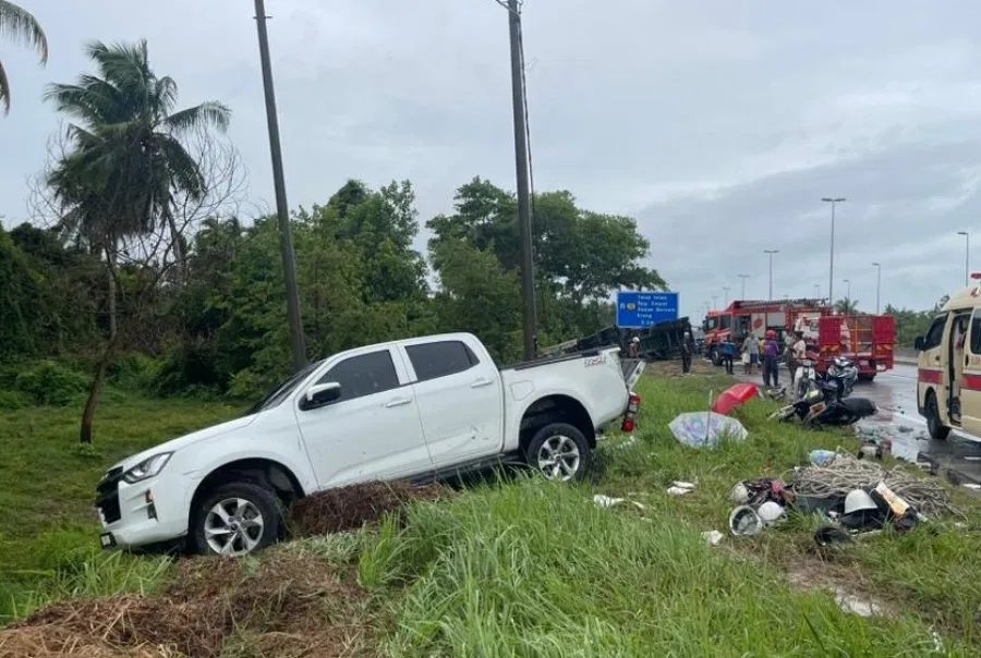 妻子在撞击中重伤身亡,丈夫与两名女儿(6岁与3岁)则受伤。事故现场还涉及一辆丰田Hilux皮卡和另一辆本田摩托车,伤者分别为罗里司机与印裔摩托车骑士。