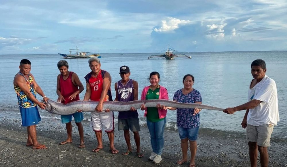菲律宾罗克塞斯市(Roxas, San Jose, Barangay Dalahican)一带海岸16日出现罕见景象——一条长约3.5公尺的巨型皇带鱼(俗称“地震鱼”或“龙宫使者”)被海浪冲上岸,已无生命迹象。