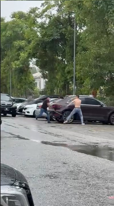 雪州实达阿南街头上演惊险一幕——两名中年男子冒雨追打一名半裸青年,其中一人还手持木棍猛挥! 现场画面被路人拍下上传至社交媒体,短短数小时即疯传,引发网友热议。