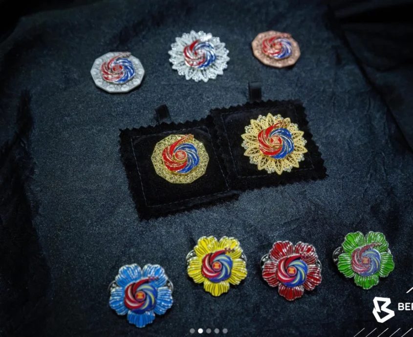 所有胸针均镶嵌本届东盟峰会的官方徽章,融合马来西亚元素与东盟标志,兼具纪念与设计价值。从用色到造型,每一枚胸针都体现了主办国的细致筹备与对外交礼仪的高度重视,也展现马来西亚作为东盟轮值主席国的周全与巧思。