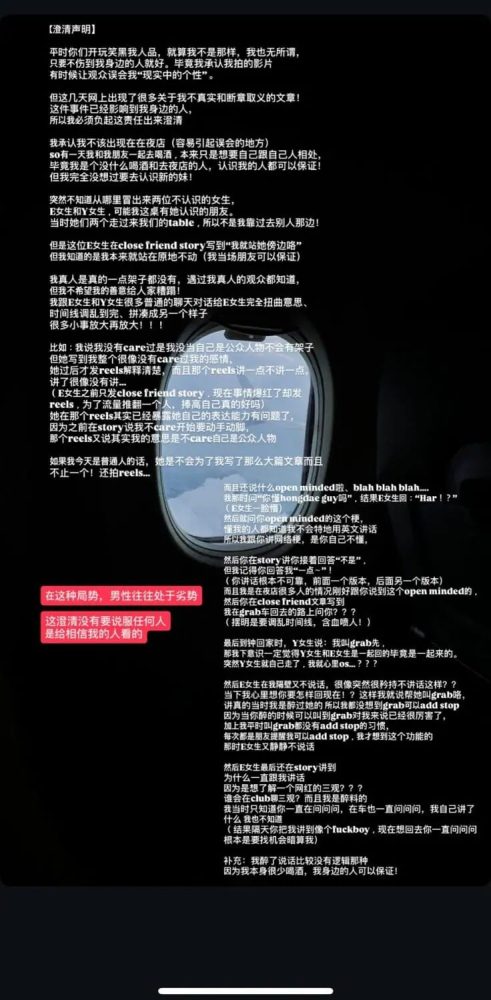 Jiasong 坦言已和前女友解释清楚,双方分手后早已没有联系,这场“夜店撩妹风波”纯属误会——