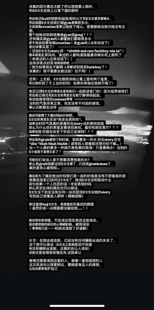 他在限时动态还原经过,强调当晚只是陪朋友小酌,没主动搭讪任何女生。